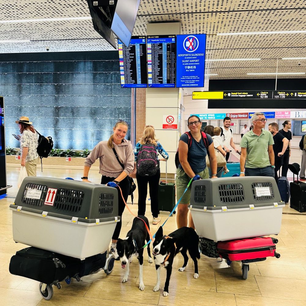 Literally, we flew to Portugal. I’ve flown with my shelties before, but they were in the cabin with me. This time was different. Driving to Portugal would have been about 3,000 km one way – after the exhausting 2,500 km drive to AWC 2019 in Finland, I promised myself I’d never do such a long trip by car again. So flying was the only option.