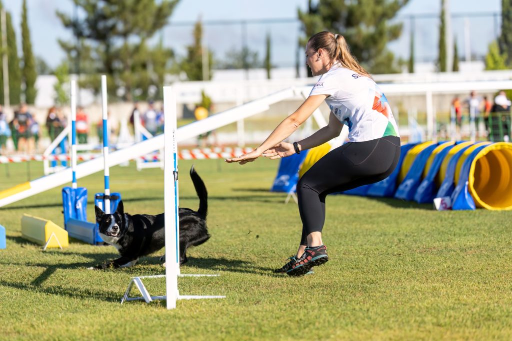 I hate running on wet grass. I don’t blame the organizers – after months of criticism about the heat in Abrantes, they did everything possible to keep dogs cool. Cooling tents, little pools everywhere, early morning schedules… it actually ended up being my first EO where I spent most of the time feeling cold! Luckily, I had packed my warm jacket and wore it every day.